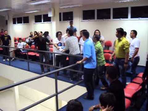 Até o momento da abertura da primeira faixa, tudo transcorria na normalidade, mas, na ocasião em que dois manifestantes abriram a segunda faixa, pedindo prisão dos condenados na Operação "Pororoca" - principalmente de Rosemiro Rocha -, seguranças e assessores do prefeito Robson Rocha, sob o comando do seu primo, conhecido como "Chico Papel", partiram para cima dos manifestantes e tentaram rasgar as faixas, empurrando os jovens que protestavam.